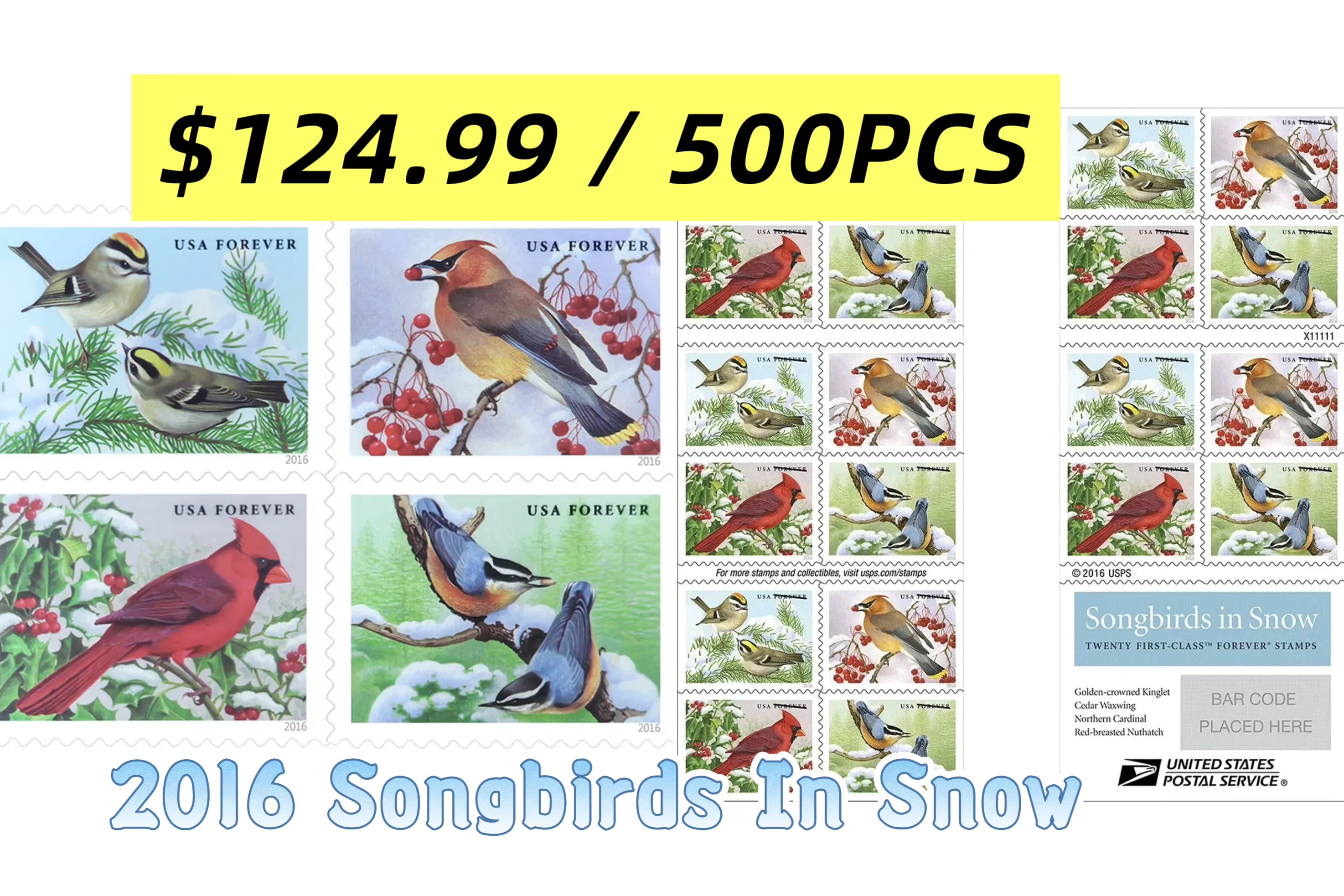 2016 Forever Stamps Songbirds In Snow 500PCS